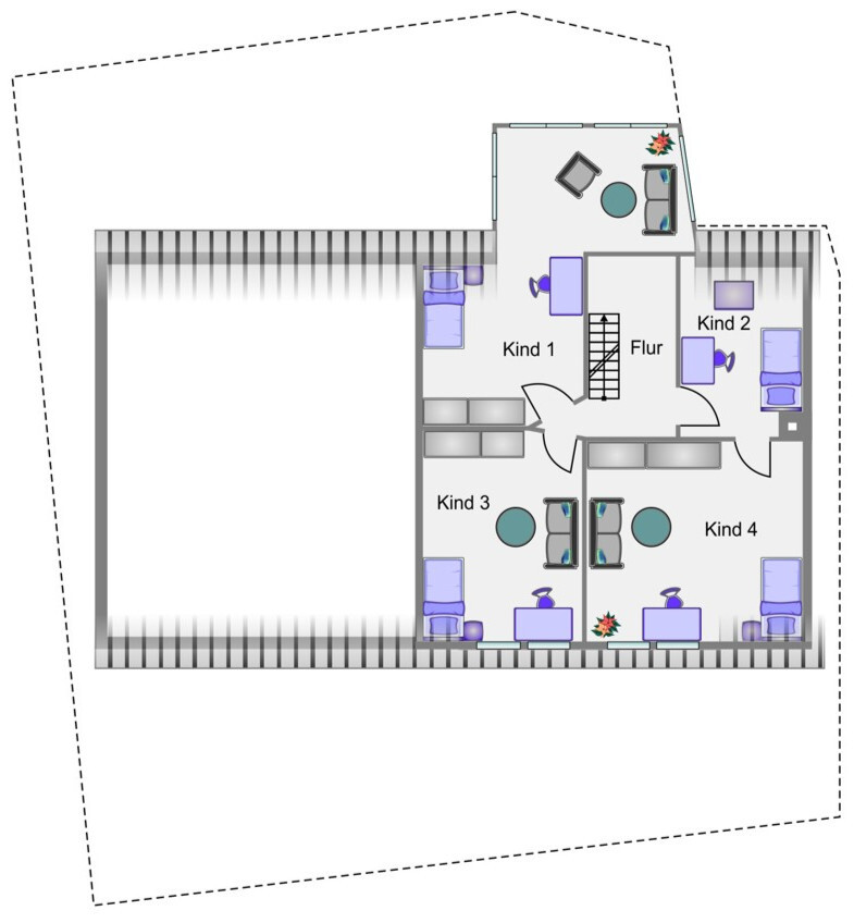 Im später ausgebauten Dachgeschoss (Jahr 2000) sind nochmals drei Zimmer mit einer hohen Raumhöhe vorhanden und sowie große Bühne.