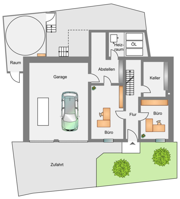 Das Wohnhaus ist komplett unterkellert. Neben dem Heizungsraum, der Waschküche und einem Kellerraum sind zwei Hobbyräume vorhanden.