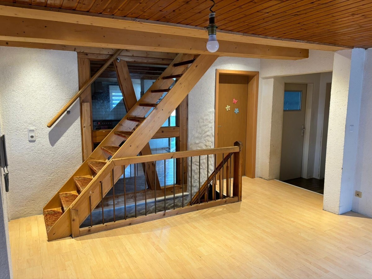 Das Haus verfügt über insgesamt 6 Zimmer, die vielseitig nutzbar sind. Im Obergeschoss können Sie sich über drei Zimmer, eine offene Küche, ein separates WC sowie ein Badezimmer freuen. Die offene Einbauküche lädt zum gemeinsamen Kochen und Verweilen ein und bildet das Herzstück des Wohnbereichs. In diesem Stockwerk beträgt die derzeitige Raumhöhe ca. 2,05 m.