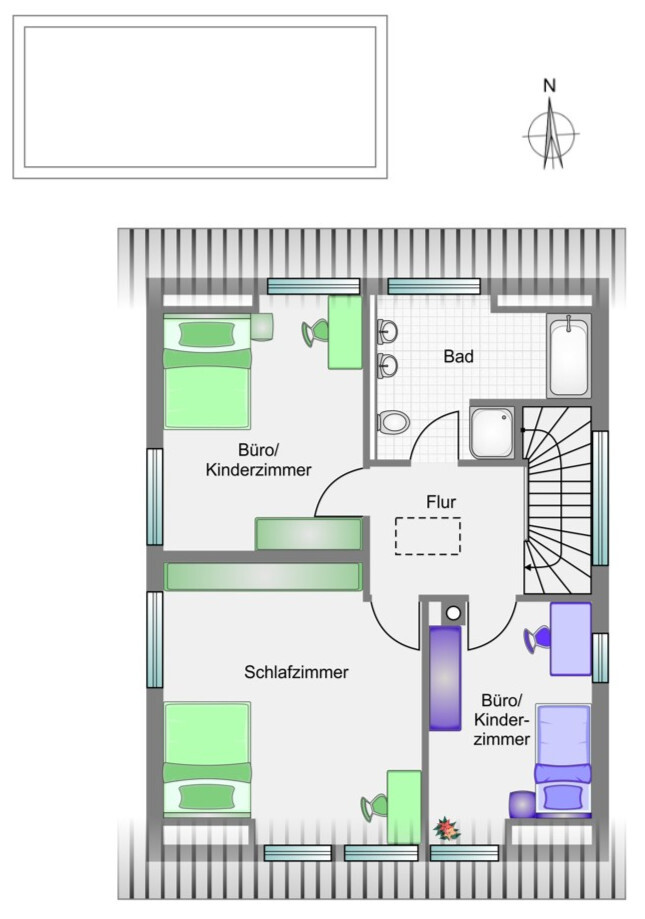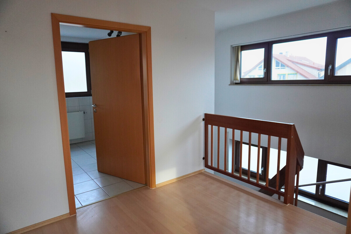 Das Obergeschoss überzeugt durch drei großzügig geschnittene Schlafräume, die vielseitig als Schlafzimmer, Kinderzimmer oder Homeoffice genutzt werden können. Alle Räume bieten eine wunderschöne Aussicht ins Grüne und sorgen für eine angenehme Wohnatmosphäre. Das helle Tageslichtbad ist mit Badewanne, Dusche, WC sowie einem Waschbecken ausgestattet und bietet ausreichend Platz für die ganze Familie.