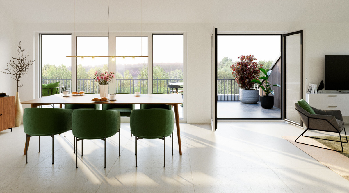 Durch innovative und design-orientierte Architektur in Verbindung mit hohen Standards bei Komfort und Ausstattung bieten die Mehrfamilienhäuser im Haslacher Weg viel private Atmosphäre.