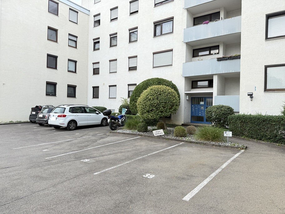 Eine exzellente Parkmöglichkeit bietet der Außenstellplatz direkt vor dem Hauseingang.