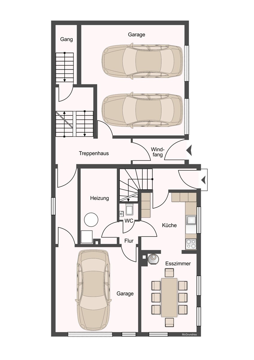 Abgerundet wird dieses seltene Angebot durch drei integrierte Garagen, die komfortables und sicheres Parken direkt im Haus ermöglichen.