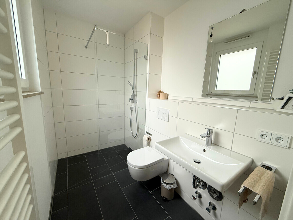 Boch, Kaldewei, Geberit, Keuco oder Hansgrohe. Und die Kombination aus einer großzügigen lichten Raumhöhe von ca. 2,50 Metern und bodentiefen Fenstern sorgt dafür, dass Sie die ersten Sonnenstrahlen des Tages in vollen Zügen genießen können.