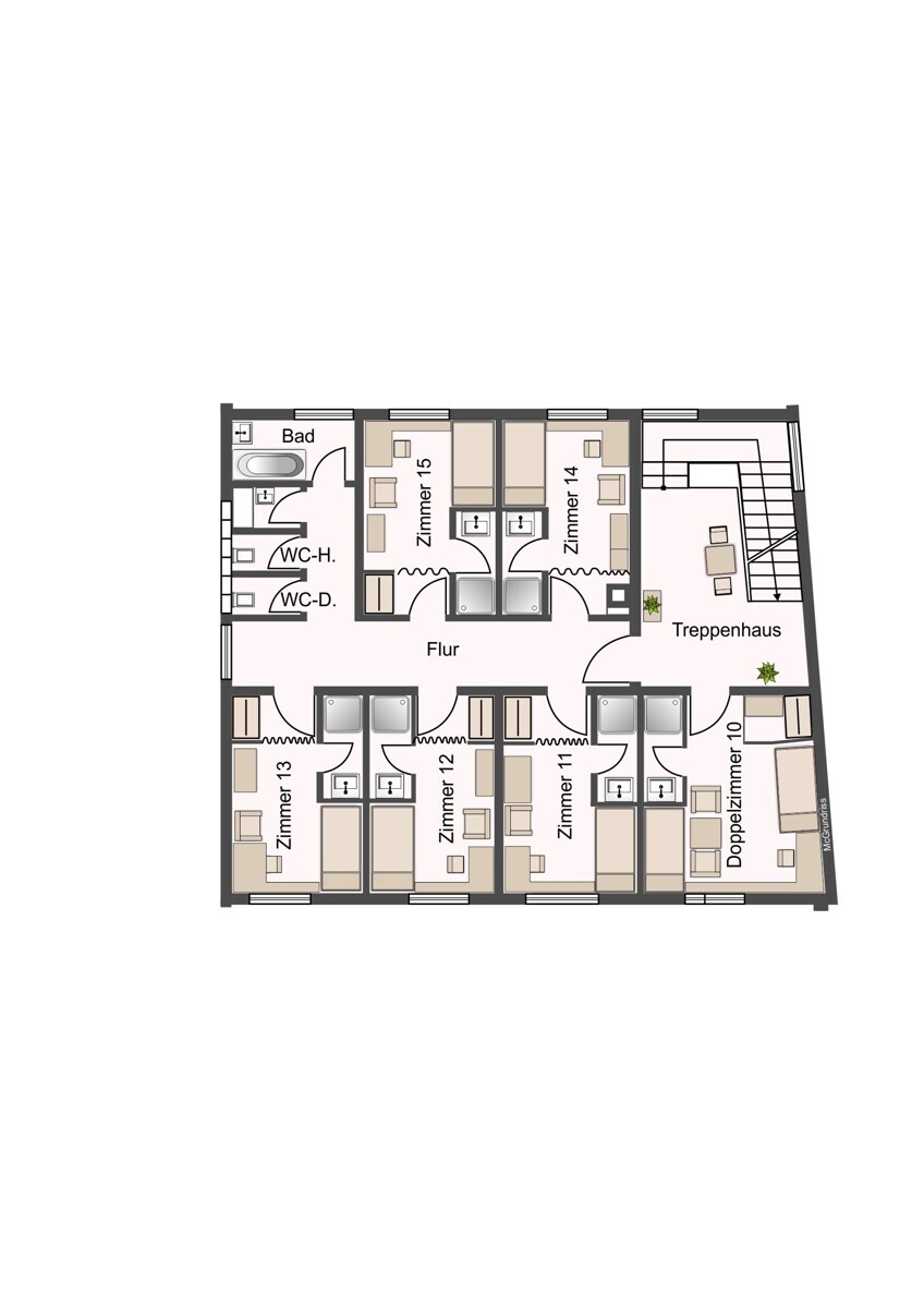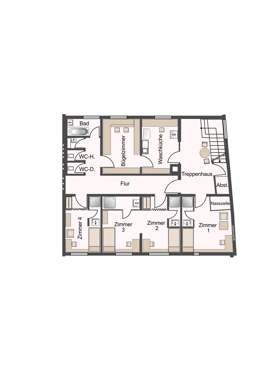 Die Immobilie befindet sich auf einem ca. 187 m² großen Grundstück und verfügt über eine großzügige Nutzfläche von rund 587 m², verteilt auf insgesamt vier Etagen. Jede Etage verfügt aktuell über mehrere Einzelzimmer, die jeweils über eigene Duschmöglichkeiten verfügen. Ergänzt wird das Raumangebot durch zusätzliche Badezimmer sowie separate WC-Anlagen pro Stockwerk.